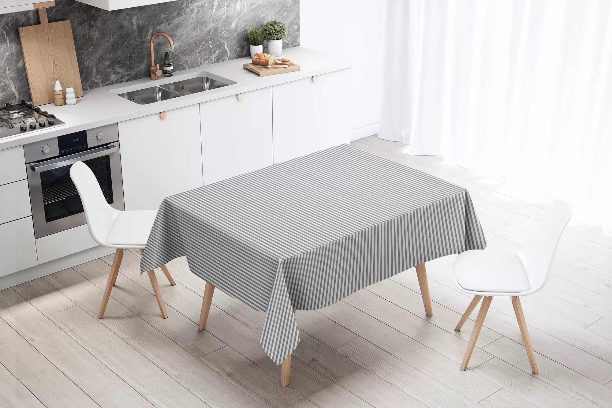 Sé el primero en valorar “Mantel «Lino rayado finito gris»”