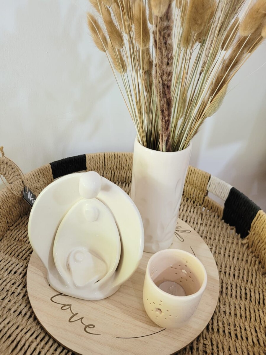 Sagrada familia y Pesebre realizado en ceramica en color crudo